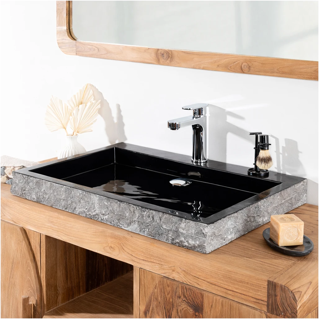 Grande vasque 70cm à poser rectangle en pierre marbre Cosy noir