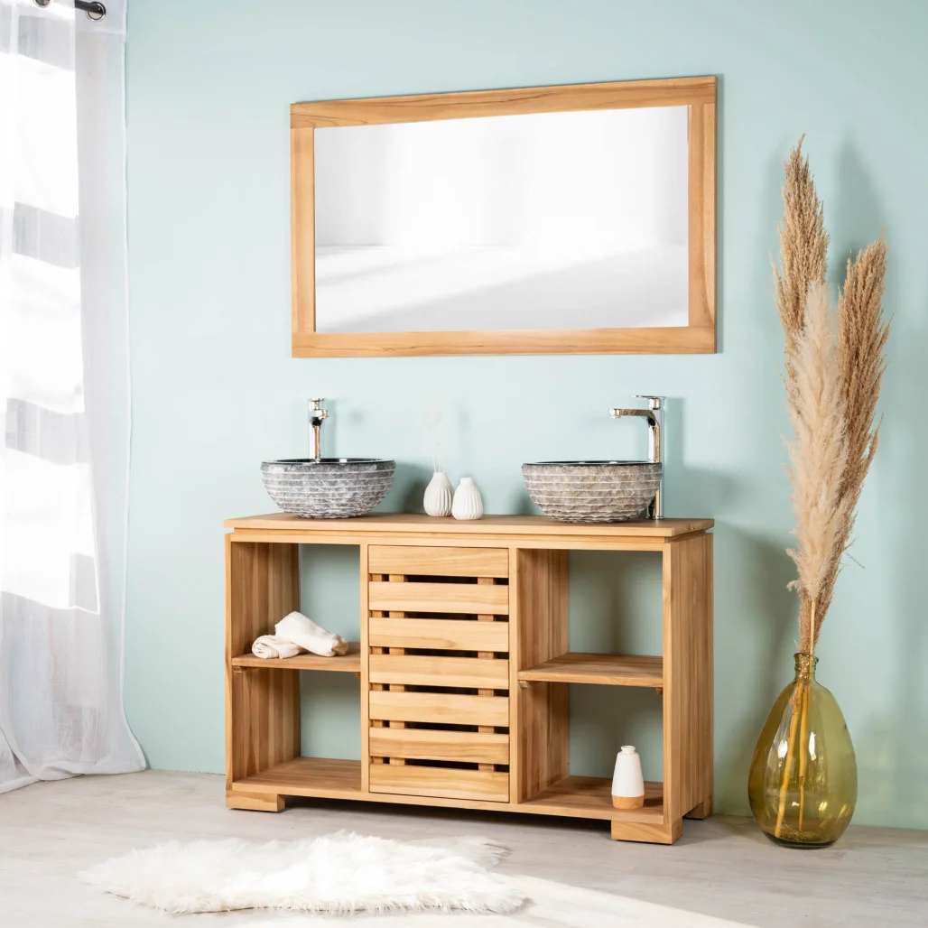 Pour créer une salle de bain à l'atmosphère zen et sereine laissez-vous tenter par ce meuble en bois massif teck !