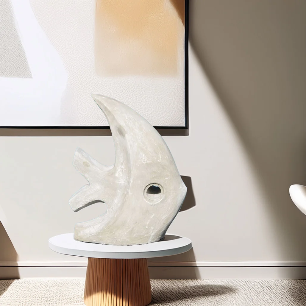 Sublimez votre intérieur avec cette sculpture contemporaine de poisson gris de 78 cm.
