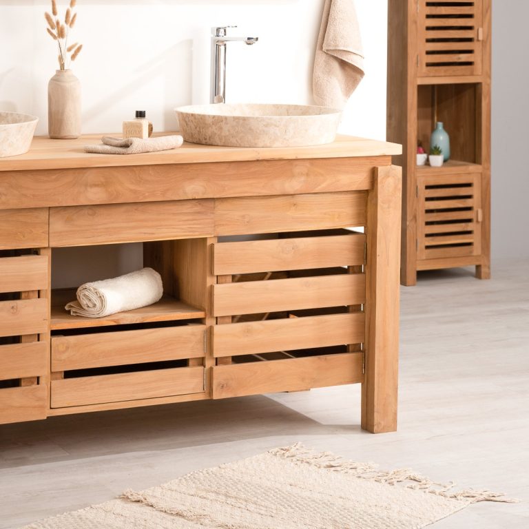 Investir dans des meubles sous vasque bois, c’est faire le choix d’un équilibre durable entre esthétique, fonctionnalité et bien-être. Le bois, et plus particulièrement le bois massif comme le teck, apporte une chaleur visuelle immédiate tout en offrant une résistance naturelle parfaitement adaptée à l’environnement exigeant de la salle de bain. Bien conçu et correctement installé, un meuble sous vasque bois traverse les années sans perdre ni son élégance ni ses qualités structurelles.