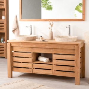 Découvrez vite notre collection zen et ses meubles de salle de bain en teck qui mettront en valeur toutes vos vasques.