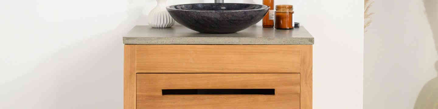 Meuble en teck massif Cosy 67cm + vasque gris