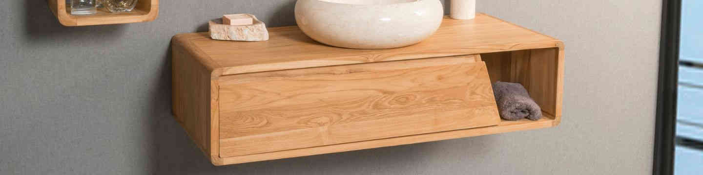 Meuble salle de bain suspendu en teck Cosy 50cm
