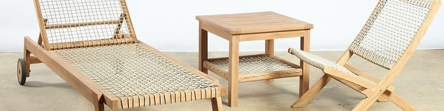 Bain de soleil en teck et corde avec roulette naturel Leina
