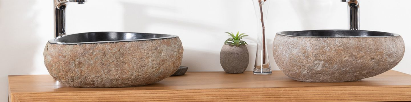 Grande vasque en pierre naturelle galet de rivière 50 cm